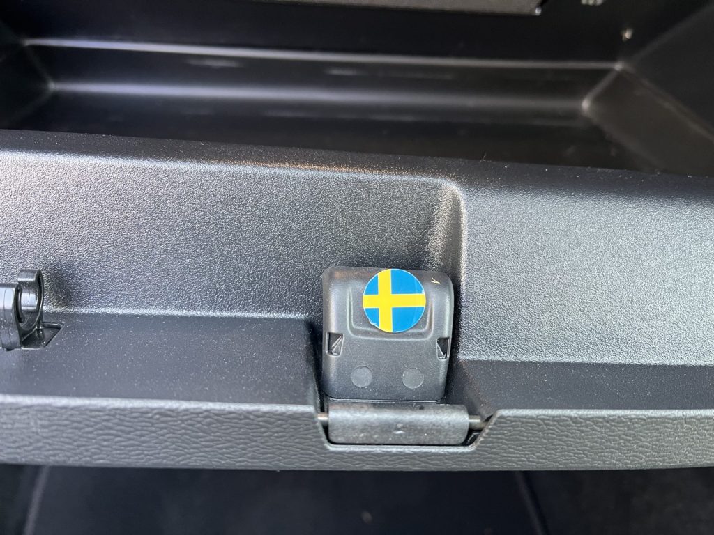 助手席前にありますグローブボックスですが、XC40だけ荷掛けフックが出せます。